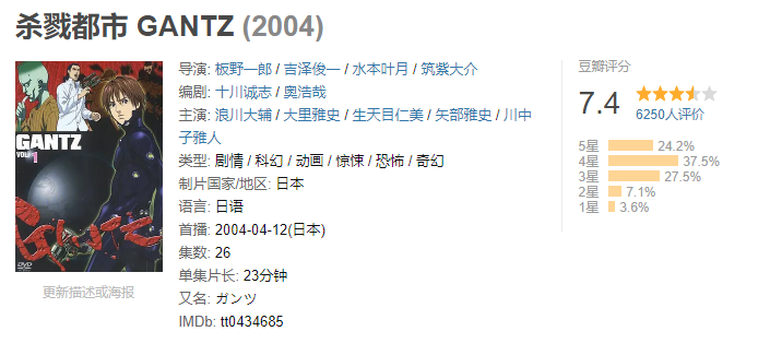 全网封禁的经典佳作《杀戮都市》系列 动漫情报 22年1月10日 编辑 蕾姆我媳妇 取消关注 关注 私信 观众朋友们大家好鸭!又到社长说经典环节了,今天社长要给大家介绍的是一部非常经典,社长觉得非常好看的佳作,如果我说名字知道的可能不多,但如果我直接上图,相信大家就会恍然大悟了.没错这次社长要给大家介绍的就是这集:漫画、动画、真人电影、CG电影的超级IP《杀戮都市》.其实《杀戮都市》是漫画家奥浩哉在2000年开始连载的漫画作品,于2013年完结共37册,漫画累计发行量1990万部以上。大家知道这个IP绝大多数都上因为16年的CG动画《杀戮都市:0》,其实社长我也是因为这部CG动画才入的坑.《杀戮都市:0》这部CG动画的确很厉害,绝对是漫改的巅峰之作,场景、怪物都非常宏大,而打击感十分流畅,战斗场面绝对的经费爆炸,非常推荐大家一看.但是今天社长要给大家介绍的并不是这部CG动画,毕竟这部CG动画社长大家的建议是看就完事了!《杀戮都市》的漫画才是绝对的经典,无论是画功还是剧情都是绝对的独一无二深入人心.这部漫画有好莱坞的大片里的一切元素,但情感表现上却着日本人的细腻与热血,有着许多黄暴场面,非常现实化的漫画作品.初看“杀戮”的时候,觉得它讲的只是极端环境下的人性,后来才发现,奥浩哉其实铺了一个极大的摊子,上面摆上的东西包括不同的爱情原则、人与人的羁绊、生命平等、社会边缘人群、反社会人格、舆论的反复能力、文明延续的必要条件、宇宙社交形态等等等.《杀戮都市》还有一部26集的动画,但因为并没有到故事最精彩的大阪篇的“百鬼夜行”,所以并没有得到太好的反响.下面社长就用动画的画面来简单给大家介绍一下故事.平凡的中学生玄野计和加藤胜在一起地铁事故中丧生,醒来后却发现自己毫发无伤地出现在一个神秘房间中.在这里,他们发现工薪族、学生、流氓和政治家等形形色色的人,和他们一样在死后被传送到这里。一个神秘的黑球给他们武器,将他们传送到城市街区,强迫他们和未曾见过的外星人战斗.剧情设置类似游戏闯关,游戏开始后每个人都会被传送到现实世界里的一个区域里,玩家能看见现实世界里的人和物,但是现实世界的人没办法看见玩家.而玩家都是在现实世界死去的人,只有集齐100积分才能彻底复活.而在游戏中死掉的话就是彻底死掉,无论受多大的伤,只要完成了游戏就可以回复受到的伤害回到正常时候,但没到达100分彻底复活下次游戏开始又会被强制召唤参加游戏.重复着杀戮与被杀戮的游戏,可是却找不到理顺一切的线索:这就是《杀戮都市》最初展现在我们面前的世界。这个不存在规则的冷酷世界,将把身处其中的生命引往迷离莫测的方向。CG动画《杀戮都市 0》是制作最好的,非常值得一下,不过在剧情方面还是比较混乱,很多设定都没有说明清楚.漫画是最推荐大家去看的,不过300多话追起来会比较累,如果有条件的可以先看漫画了解了大概设定后再看《杀戮都市 0》观感最好!